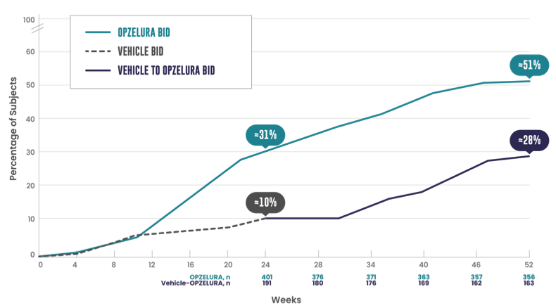 (DISCLAIMER) OPZELURA is for topical use only. OPZELURA is not for ophthalmic, oral, or intravaginal use.1 Satisfactory patient response may require treatment with OPZELURA for more than 24 weeks. 51% of patients out of 356 who continued using OPZELURA in a less robust extension achieved 75% facial repigmentation at 52 weeks.1,2