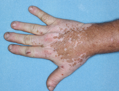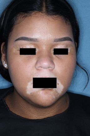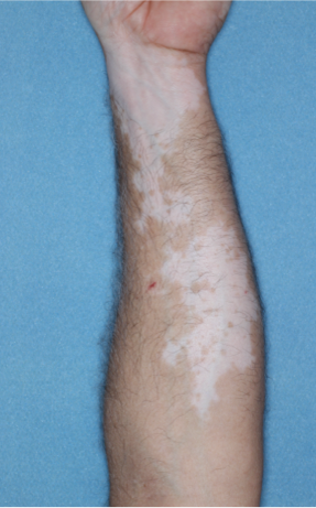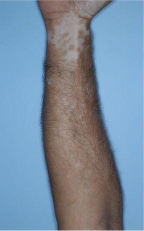 A person showing symptoms of nonsegmental vitiligo A person showing symptoms of nonsegmental vitiligo